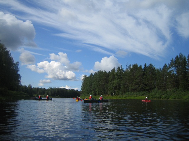 Oulujoella järjestetään opastettuja retkiä kajakeilla sekä intiaanikanooteilla. Rentouttavalla retkellä on aikaa ihailla jokivarren maisemia!